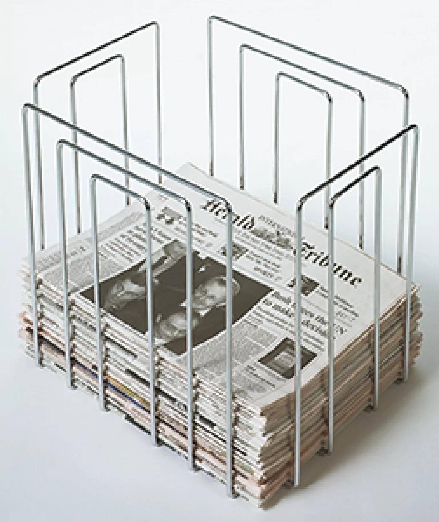 Genau im Lettre-Format ... „Papiersammler und Zeitungsbinder. Willi Glaeser gestaltet 1989 für den Schweizer Hersteller Thomas Merlo & Partner dieses geradlinige Behältnis. Kein Versteckspiel gesammelter Tageszeitungen oder Zeitschriften mehr – weder im Büro noch nahe dem Lesesessel."
