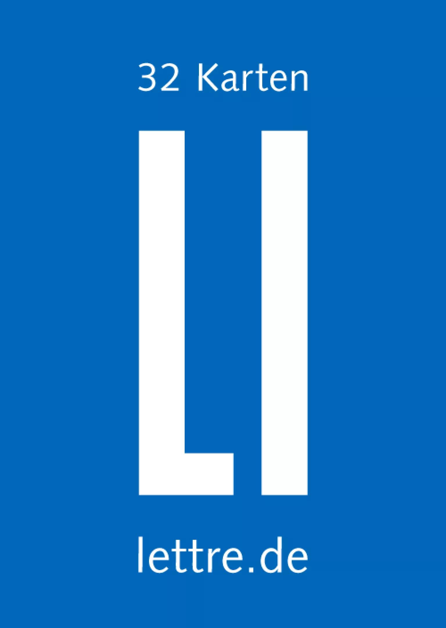 32 Karten auf Chromosulfatkarton, 350 g/m² in Weißblechdose oder goldenem oder roten Geschenkkarton mit Deckblatt